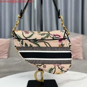 Replica Dior M0455 Saddle Bag With Strap Pink Cross-Stitch Embroidery
