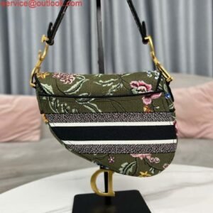 Replica Dior M0455 Saddle Bag With Strap Green Cross-Stitch Embroidery