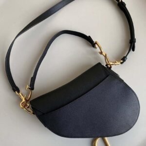 Replica Dior M0455 Saddle Bag With Strap Black Grained Calfskin