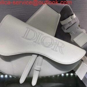 Replica Dior M0455 Saddle Bag With Strap Light Gray Grained Calfskin