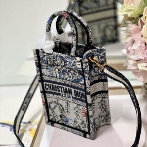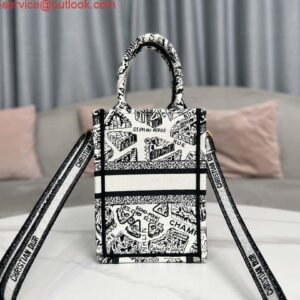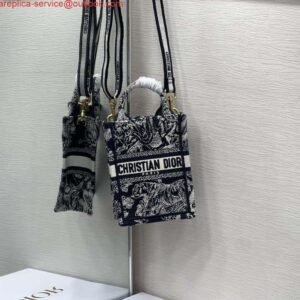 Replica Dior S5555 Mini Dior Book Tote Phone Bag White and Black Eembroidery S1108