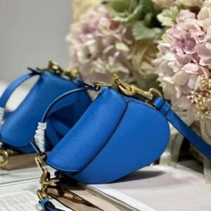 Replica Dior S5685 Micro Saddle Bag With Strap Scarlet Blue Goatskin