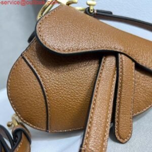 Replica Dior S5685 Micro Saddle Bag With Strap Scarlet Brown Goatskin