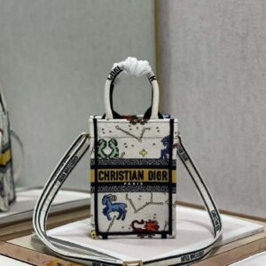 Replica Dior S5555 Mini Dior Book Tote Phone Bag White multicolor Deer embroidery S1105
