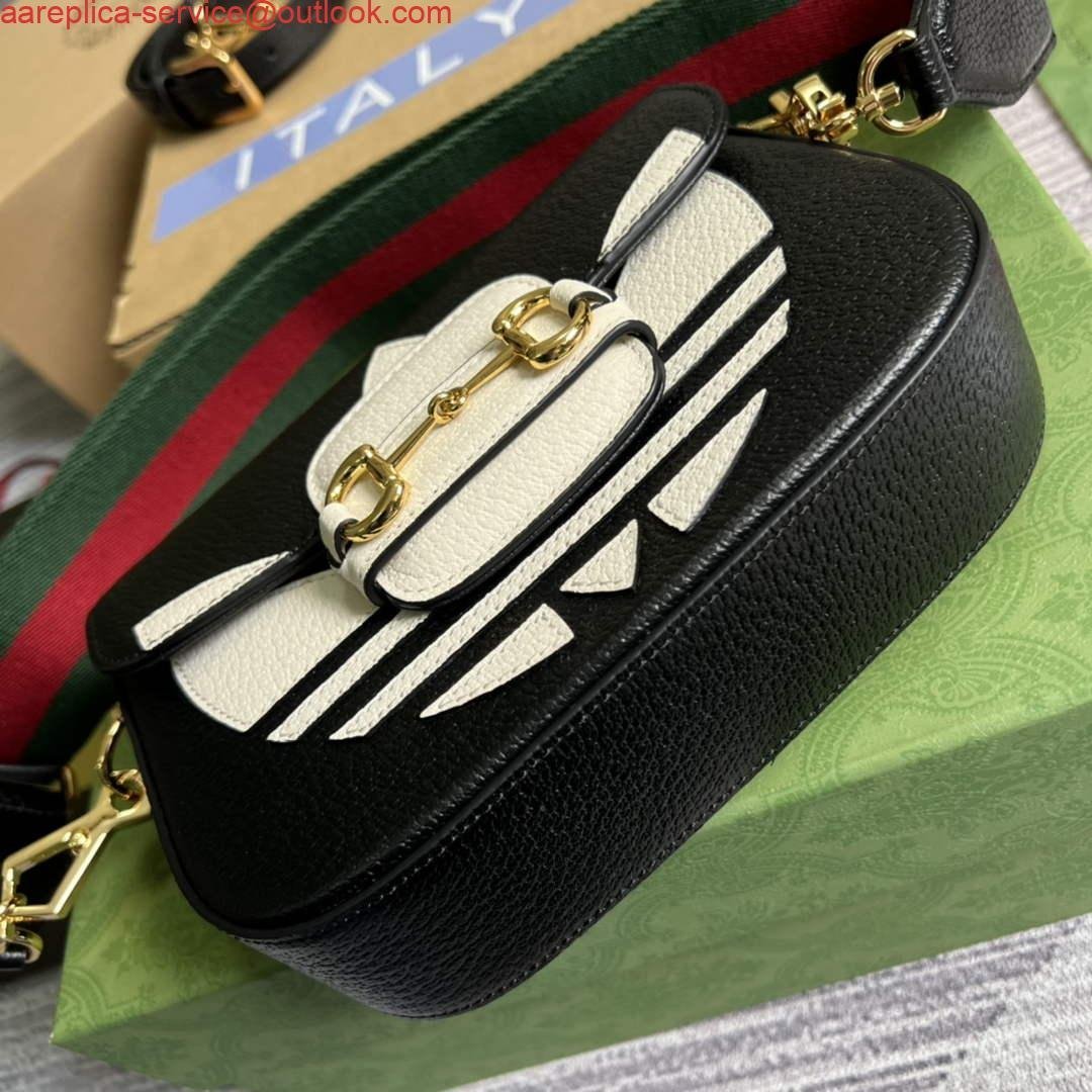 Replica Adidas x Gucci 658574 Horsebit 1955 mini bag black and white leather