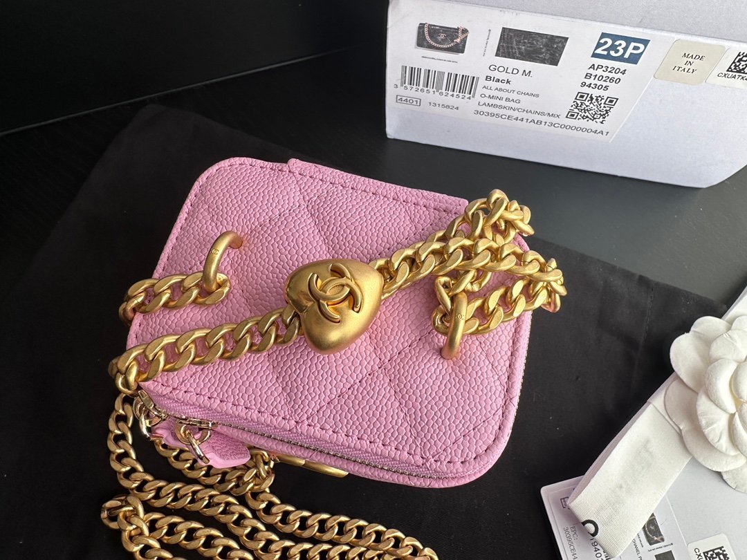 Replica Chanel Top Clutch With Chain Grained High Quality Calfskin & Gold-Tone Metal Pink Ap3203