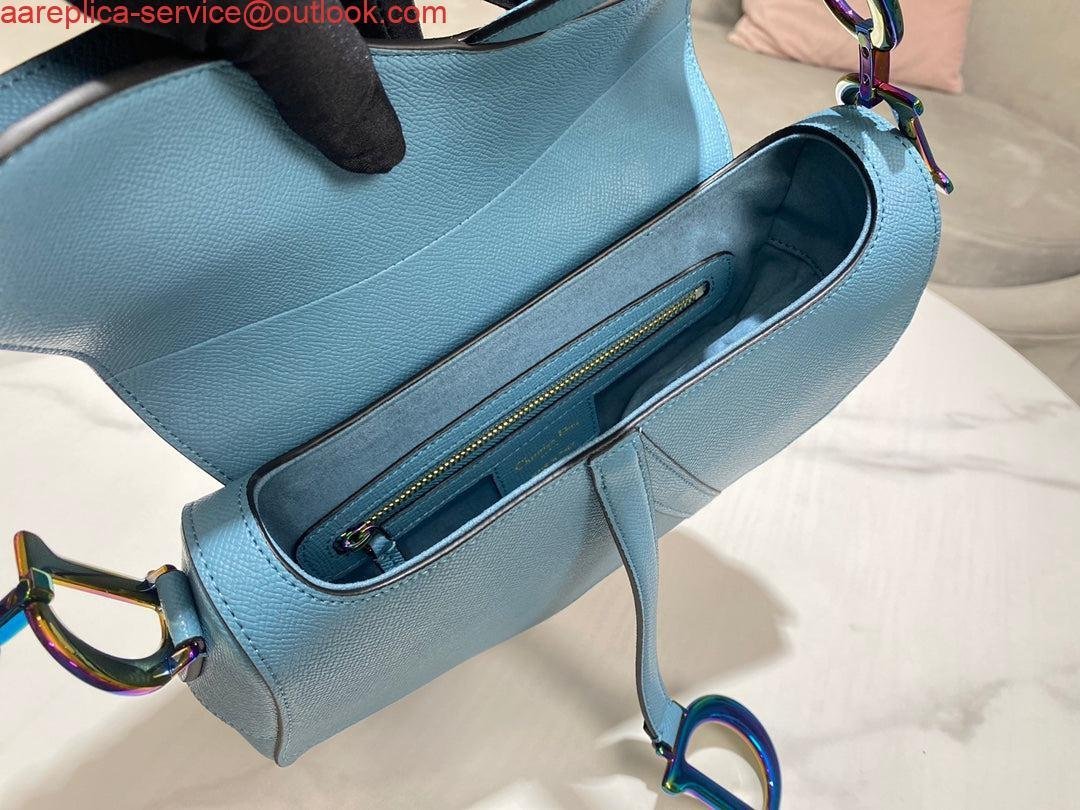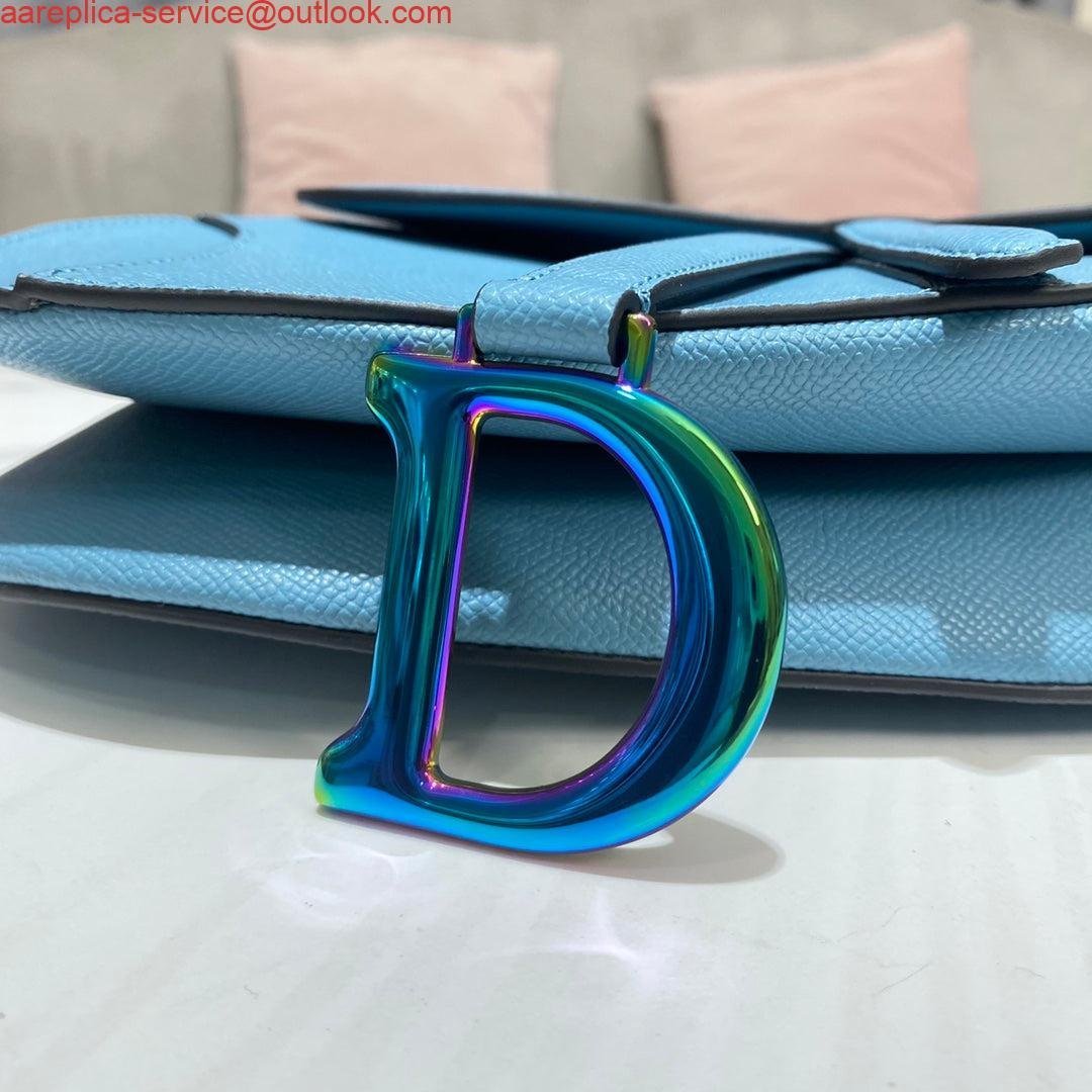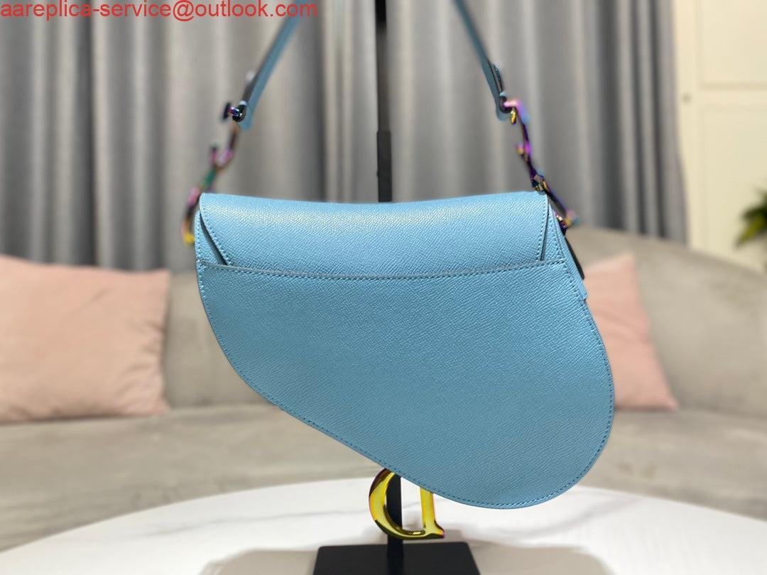Replica Dior M0446 Dior Saddle Bag Light Blue Grained Calfskin Blue logo