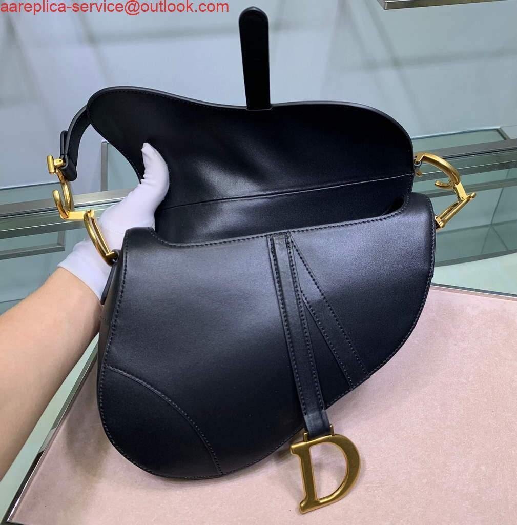 Replica Dior M0446 Dior Saddle Bag M0447 Black Goatskin Gold Hardware