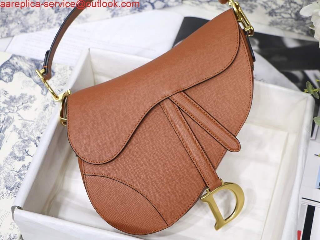 Replica Dior M0446 Dior Saddle Bag M0447 Brown Grained Calfskin