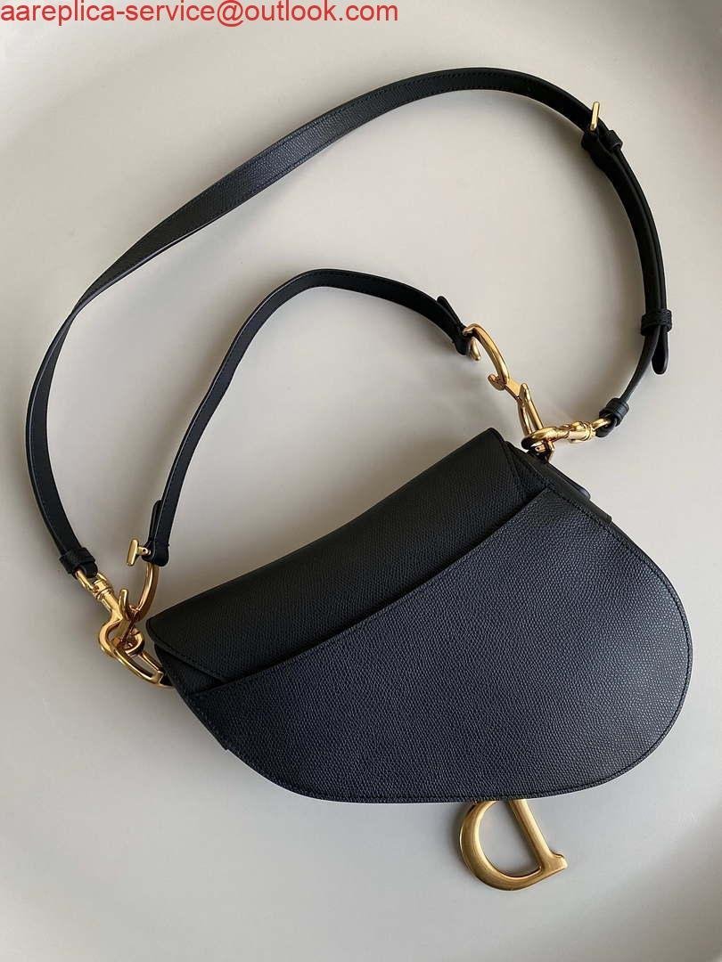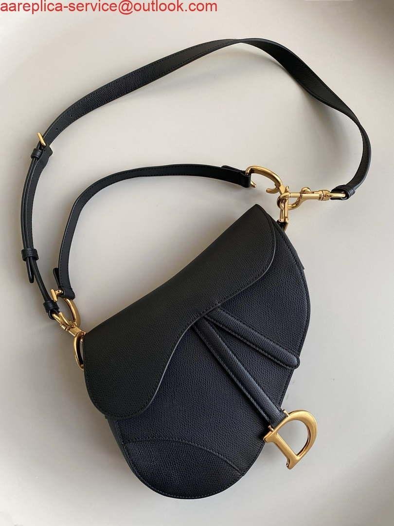 Replica Dior M0455 Saddle Bag With Strap Black Grained Calfskin