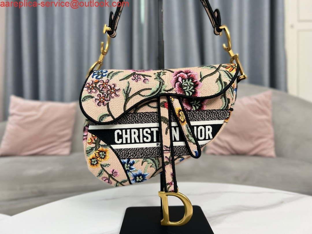 Replica Dior M0455 Saddle Bag With Strap Pink Cross-Stitch Embroidery