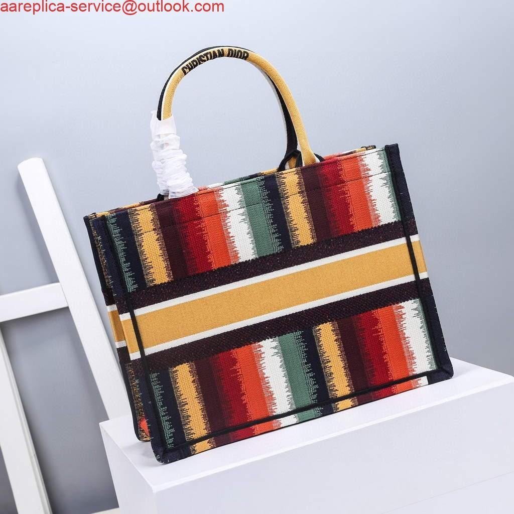 Replica Dior M1286 Dior Book Tote Red Multicolor D-Stripes Embroidery