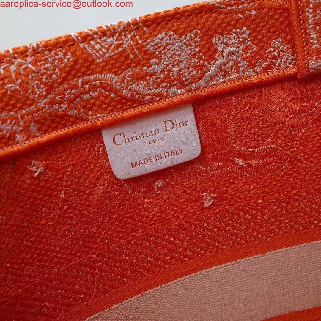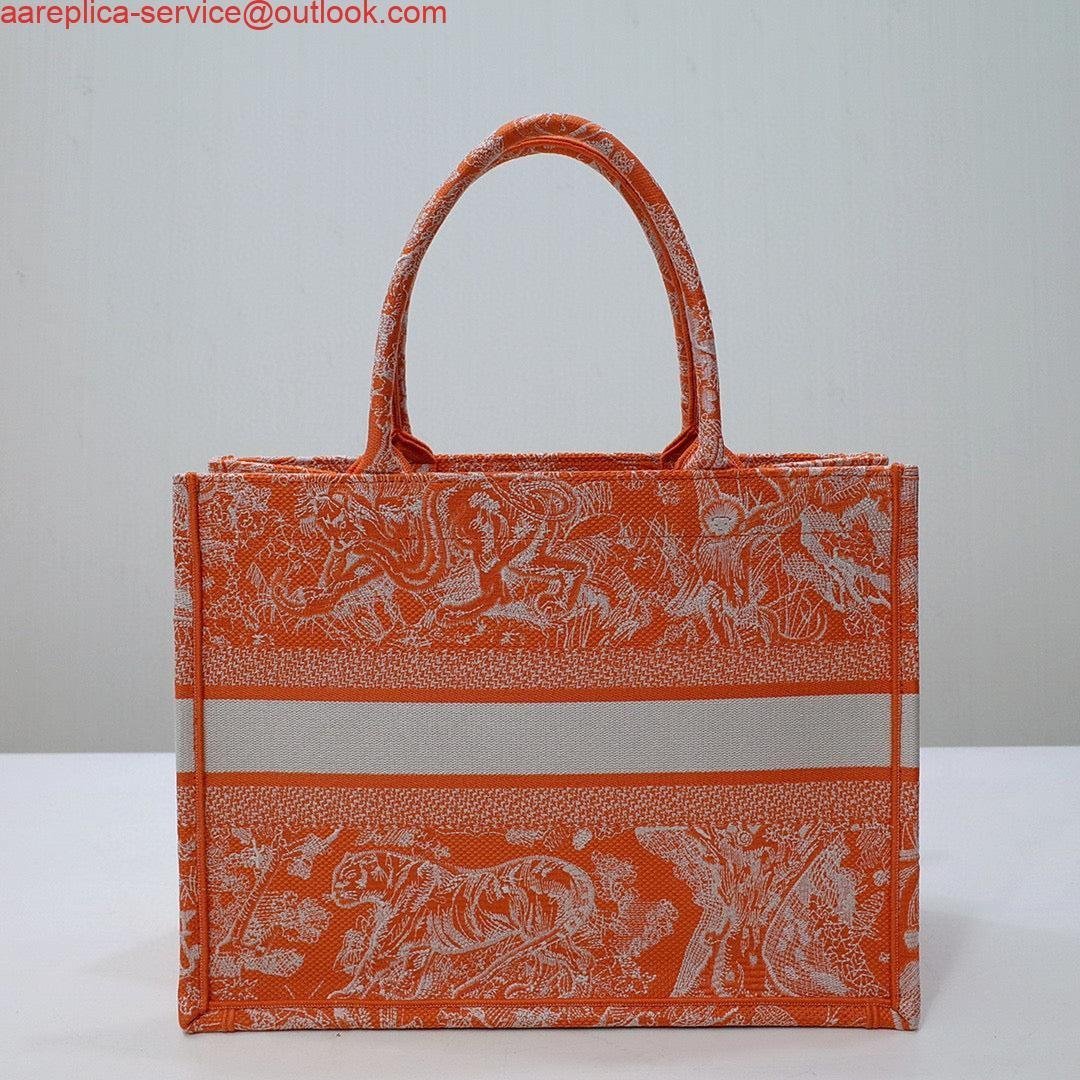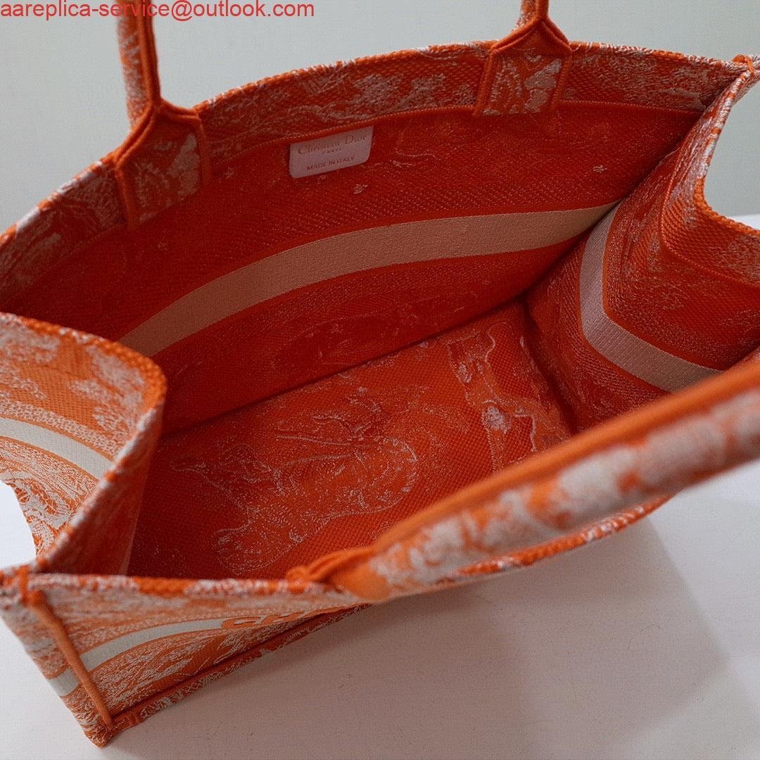 Replica Dior M1296 Book Tote Medium Neon Orange Toile de Jouy Reverse Embroidery