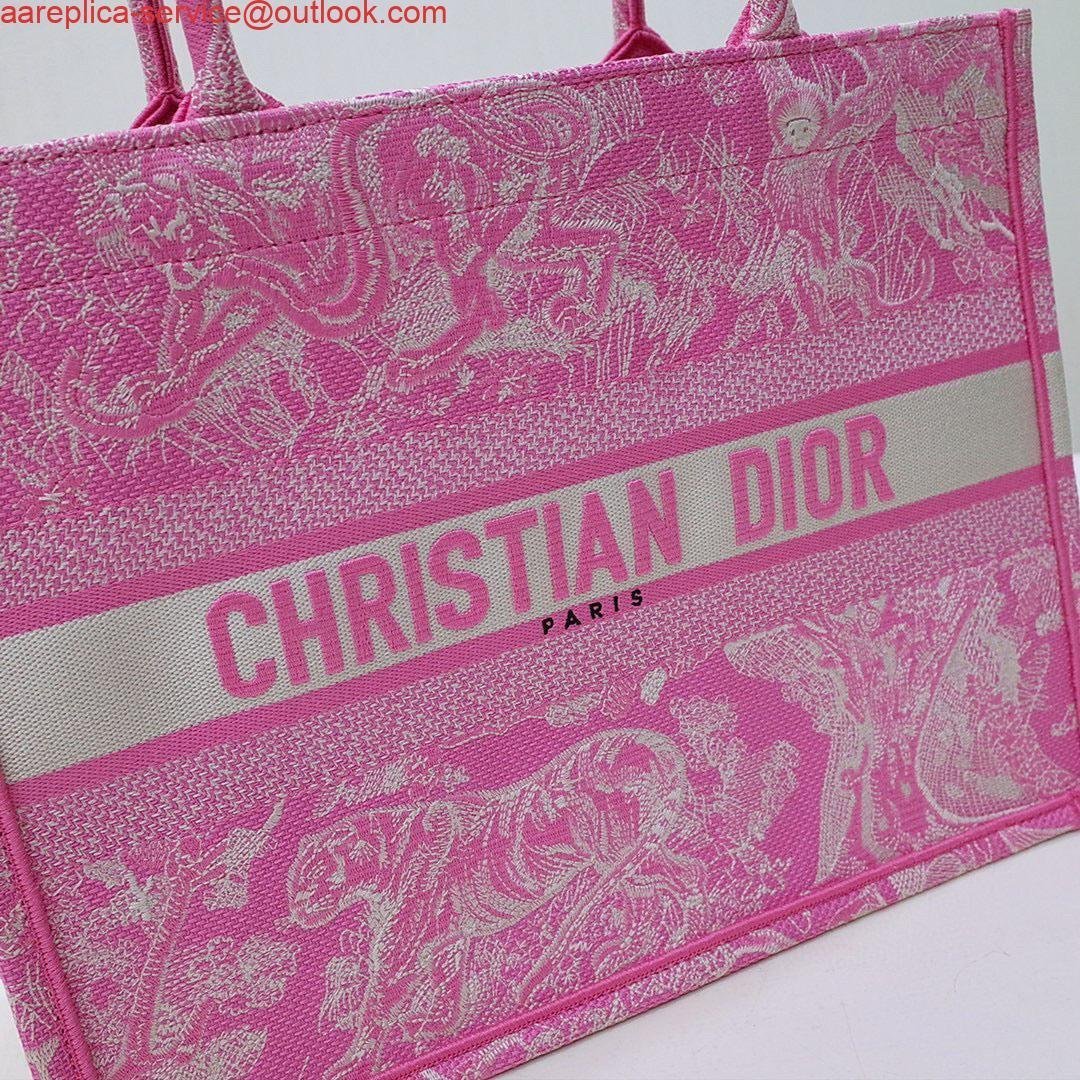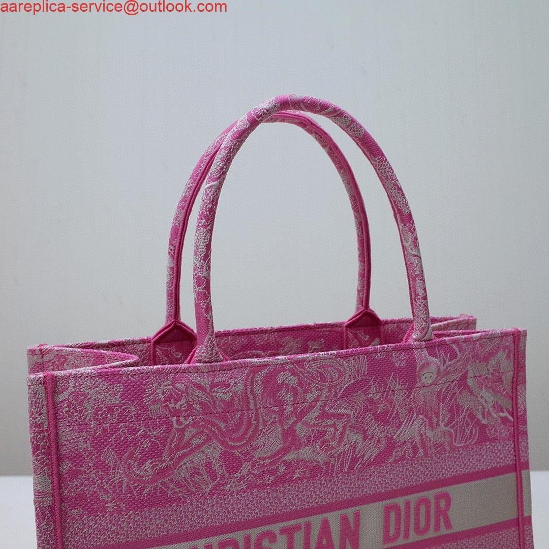 Replica Dior M1296 Book Tote Medium Neon pink Toile de Jouy Reverse Embroidery