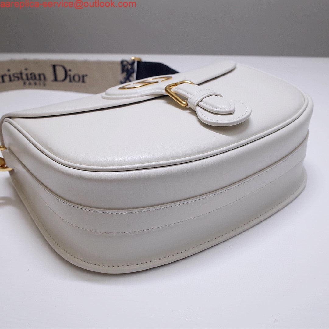 Replica Dior M9320 Large Bobby Bag white Box Calfskin with Blue Oblique Strap