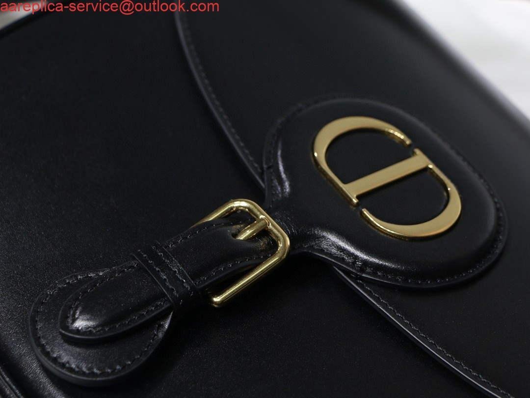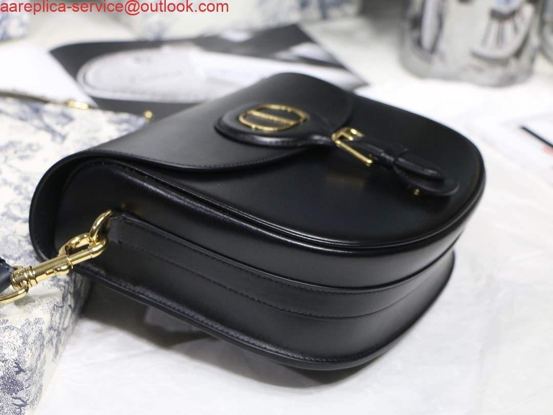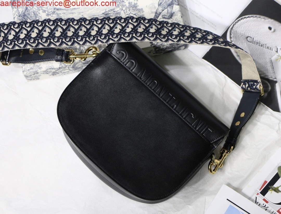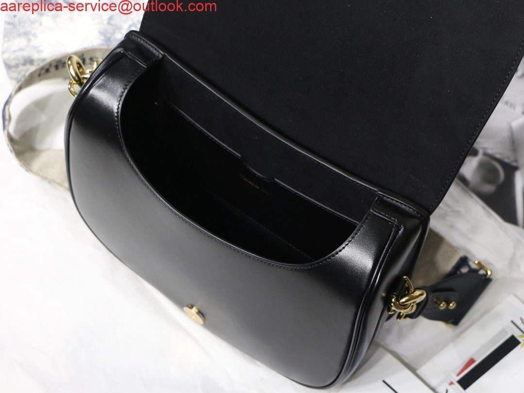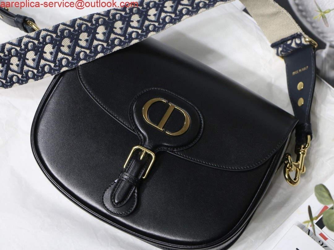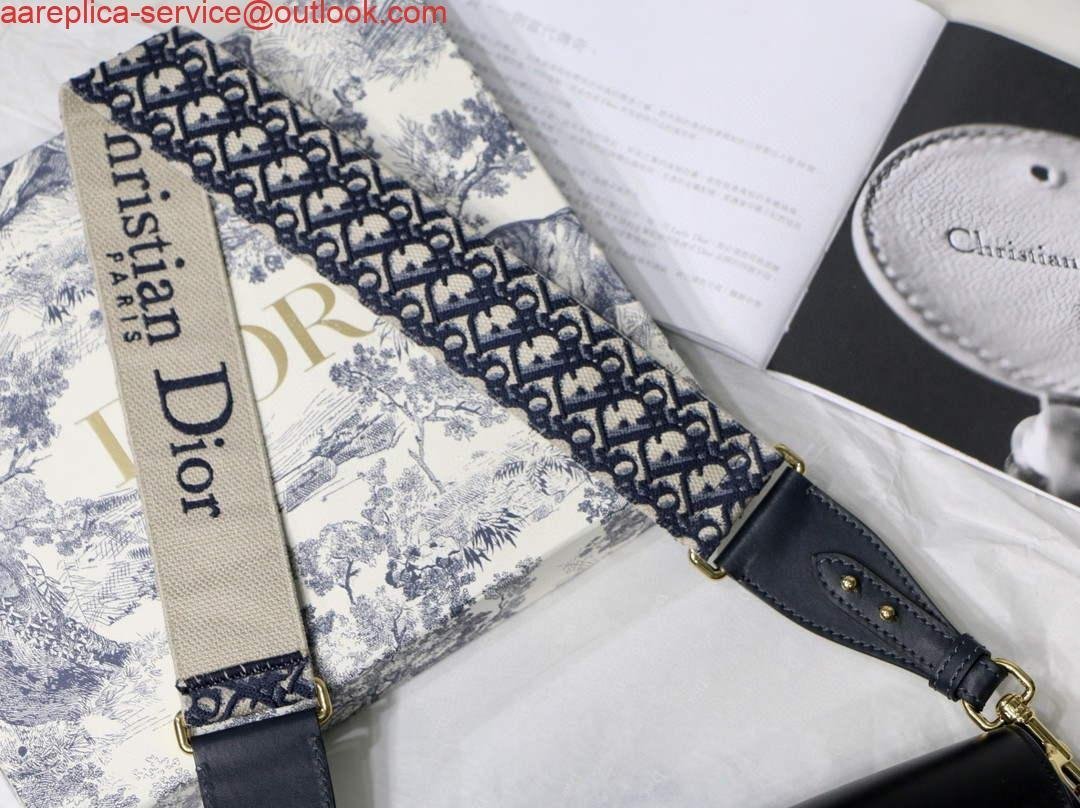 Replica Dior M9320 Large Dior Bobby Bag Black Calfskin With Blue Oblique Embroidered Strap