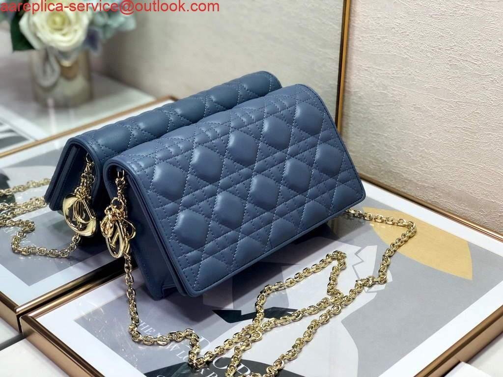 Replica Dior S0204 Lady Dior Pouch Ultramatte Cannage Calfskin Blue