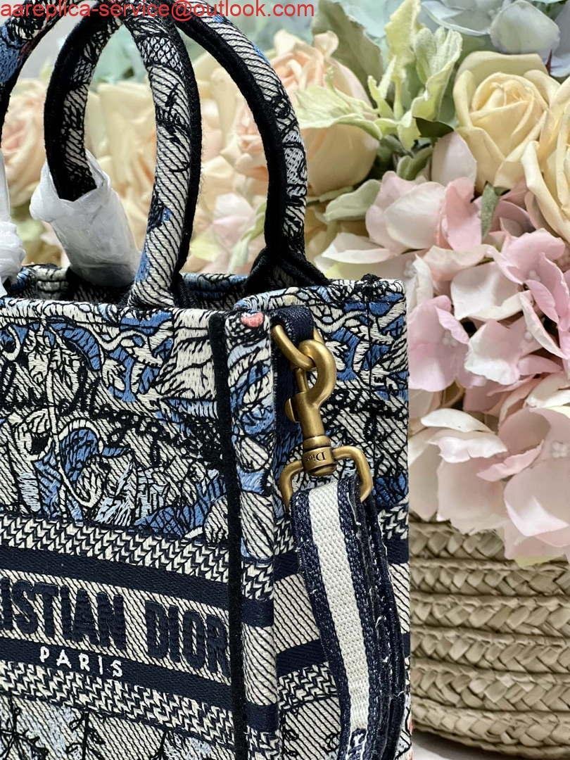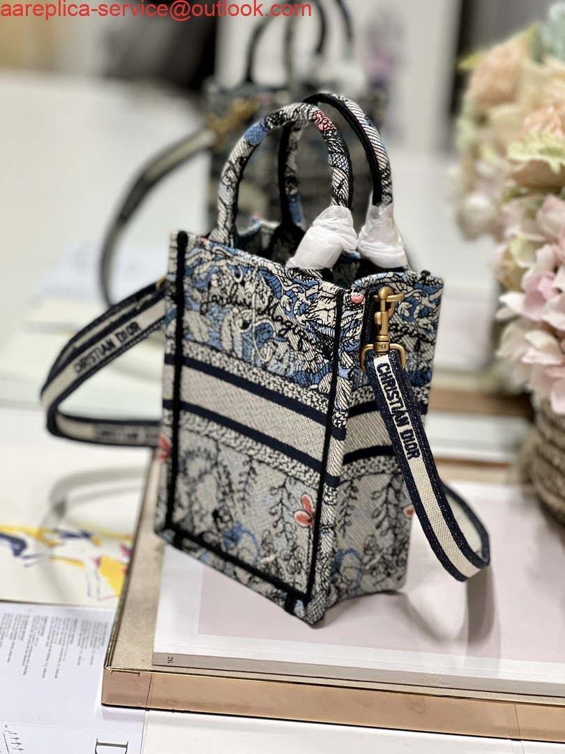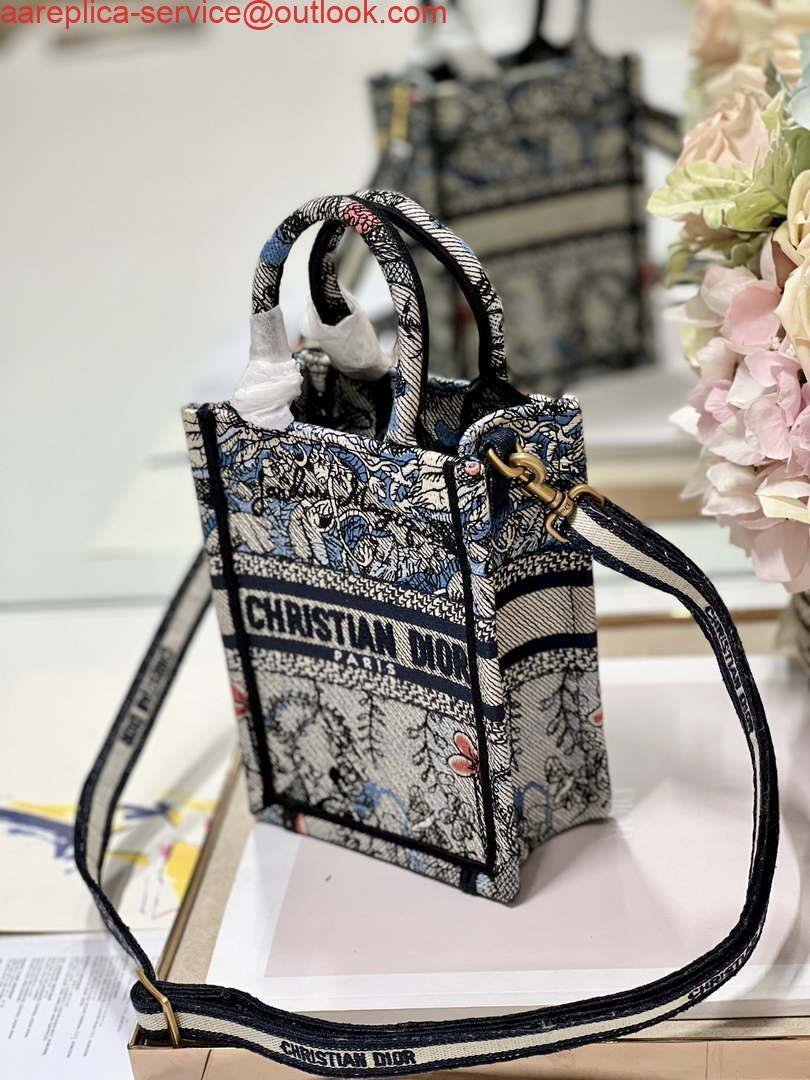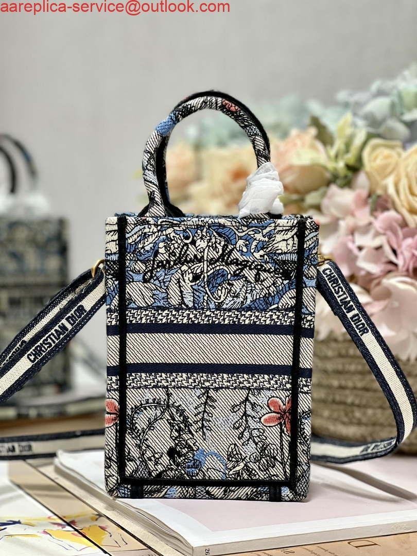 Replica Dior S5555 Mini Dior Book Tote Phone Bag Blue multicolor embroidery S1102