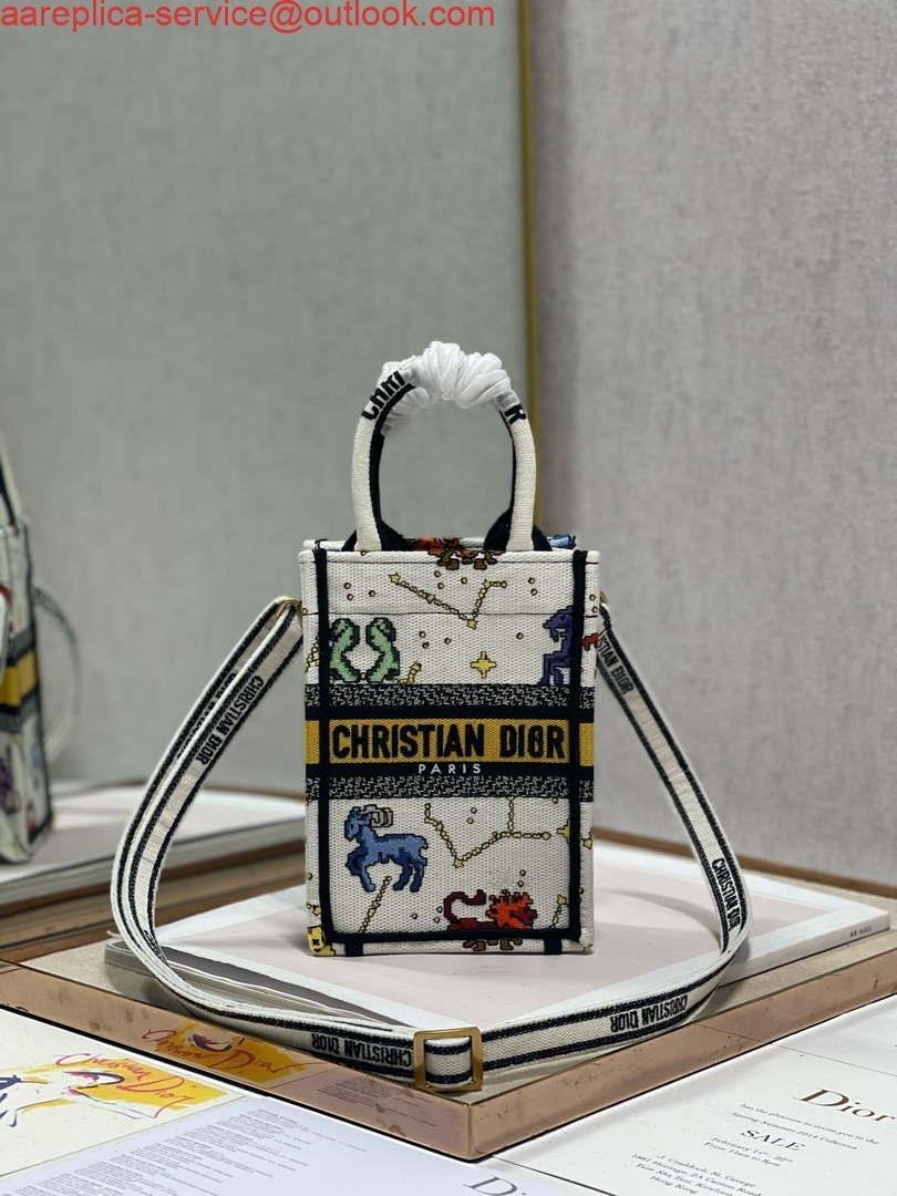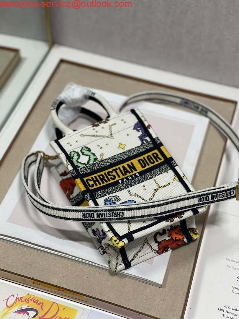 Replica Dior S5555 Mini Dior Book Tote Phone Bag White multicolor Deer embroidery S1105