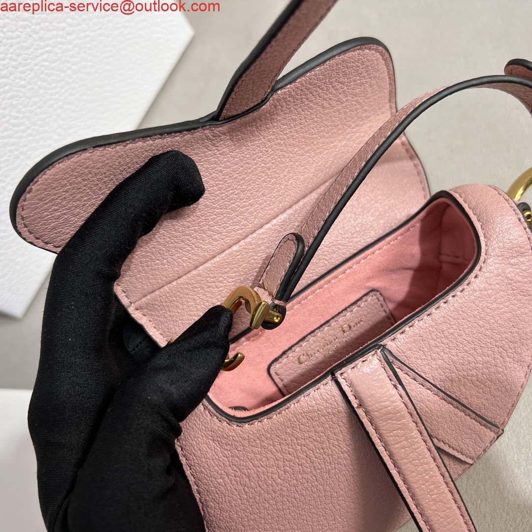 Replica Dior S5685 Micro Saddle Bag With Strap Scarlet Pink Goatskin