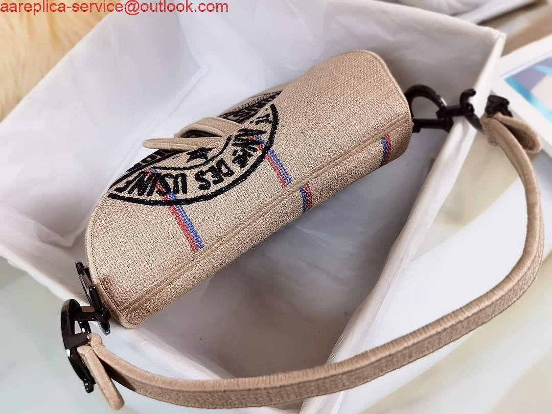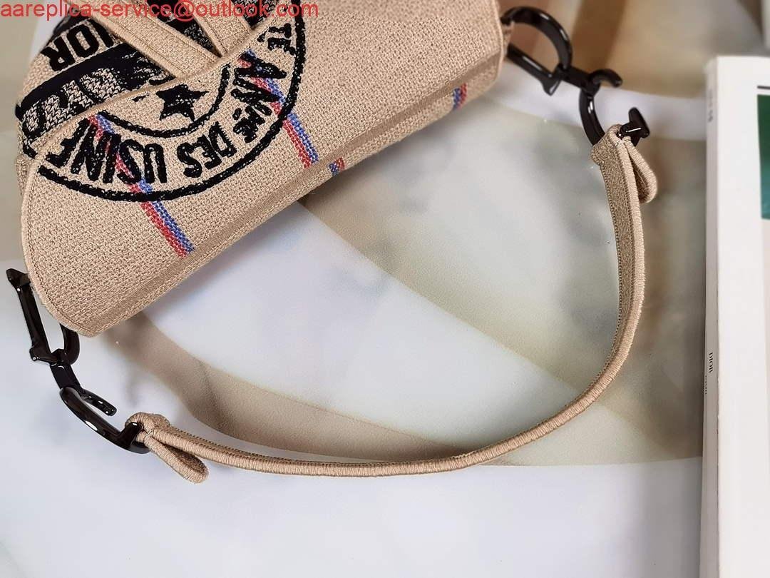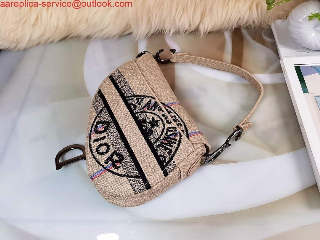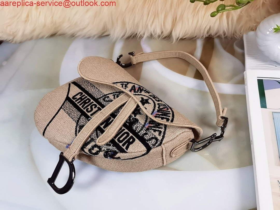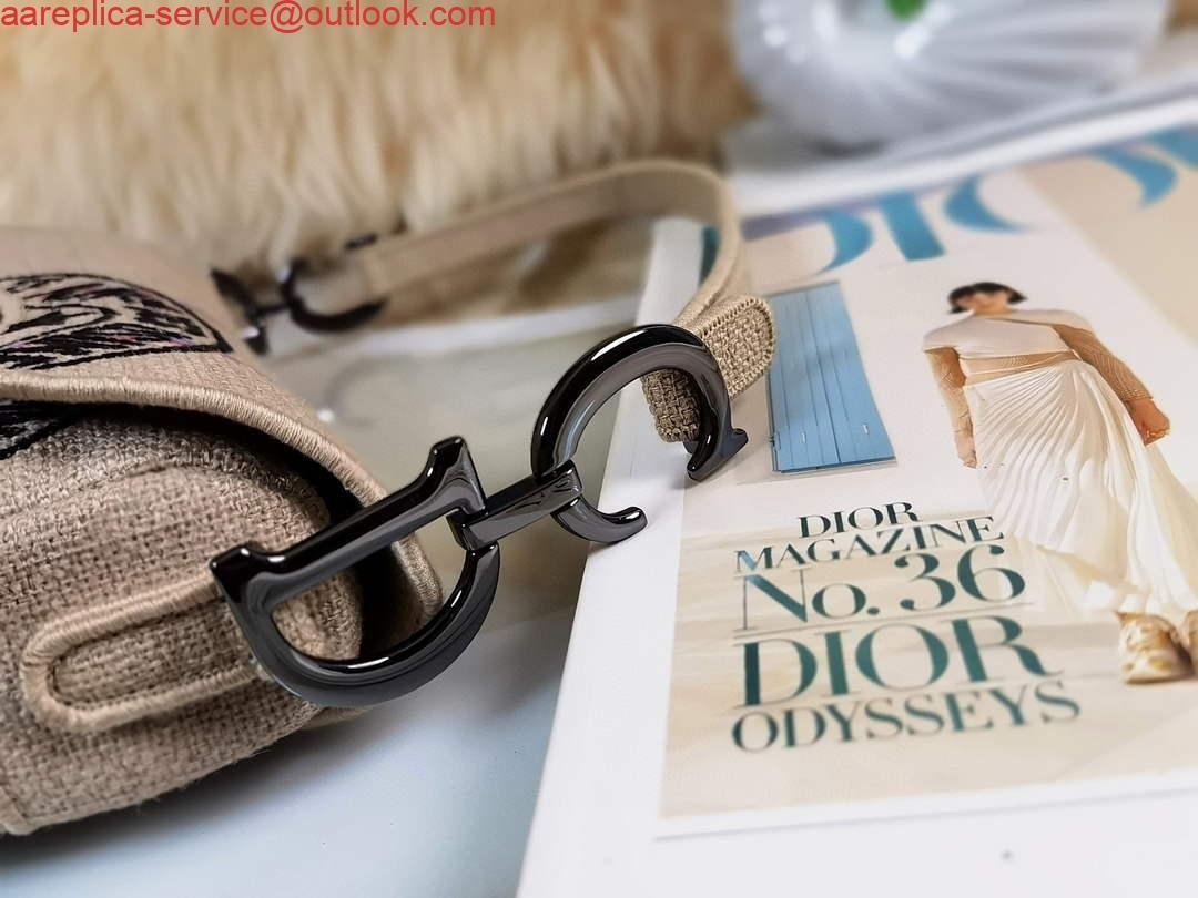 Replica Dior Saddle Bag Beige Jute Canvas Embroidered M0446