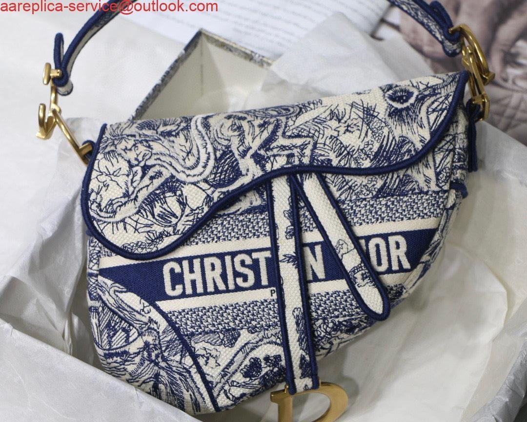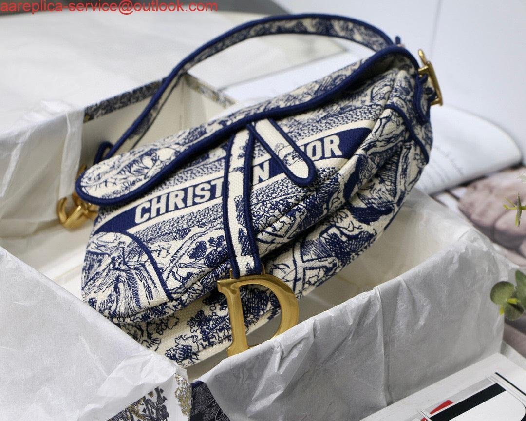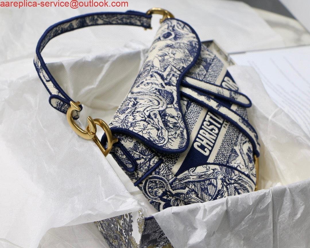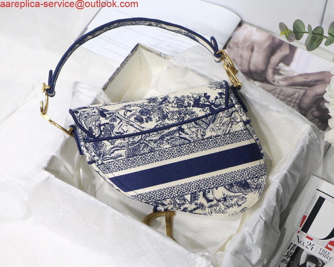 Replica Dior Saddle Bag M0446 Blue Toile de Jouy Embroidery