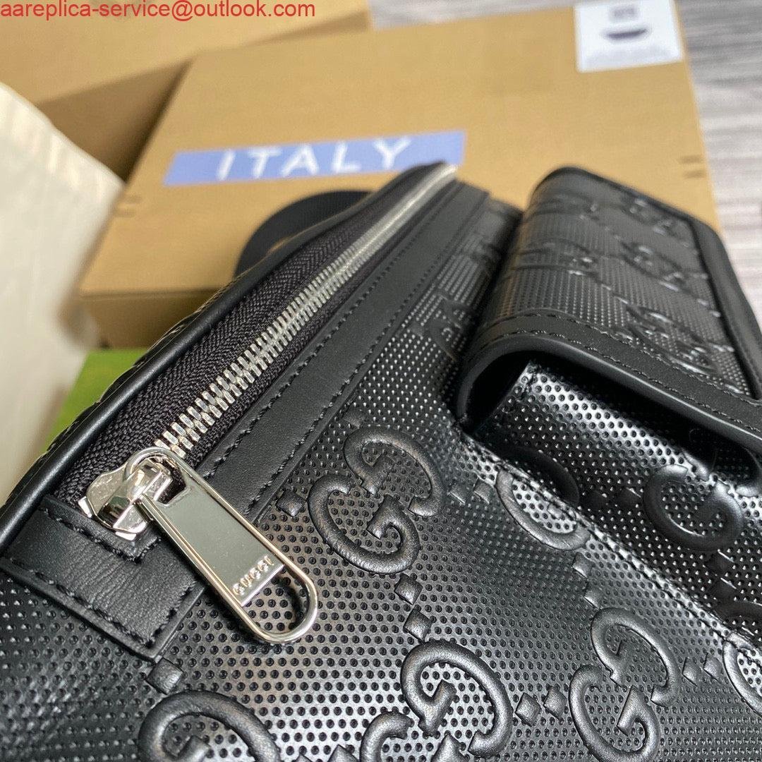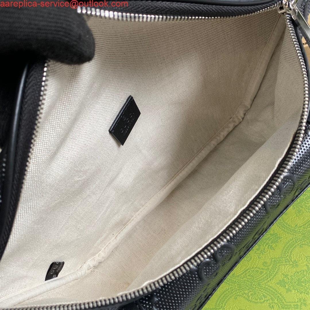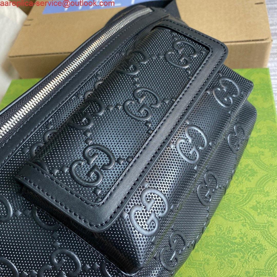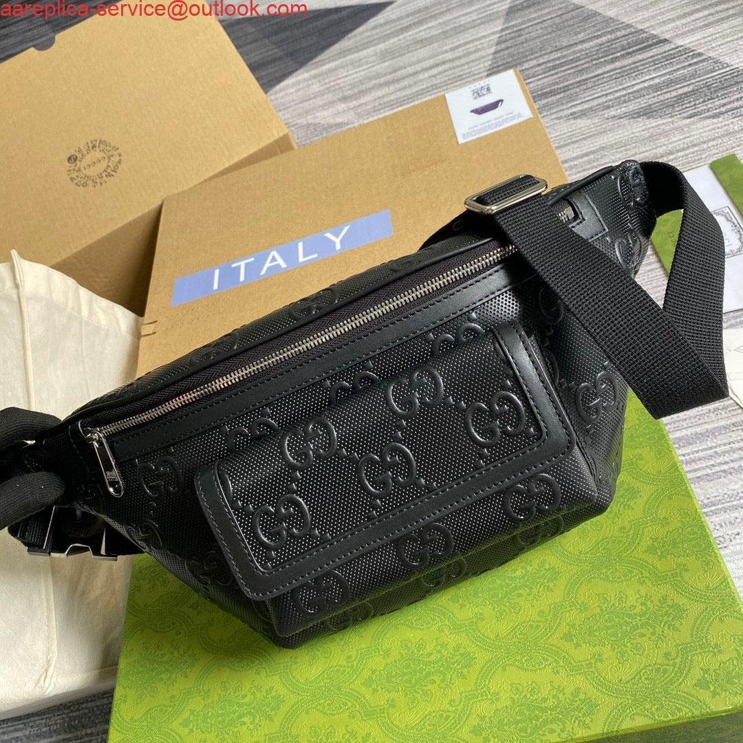 Replica Gucci 645093 GG embossed belt bag Black GG embossed leather