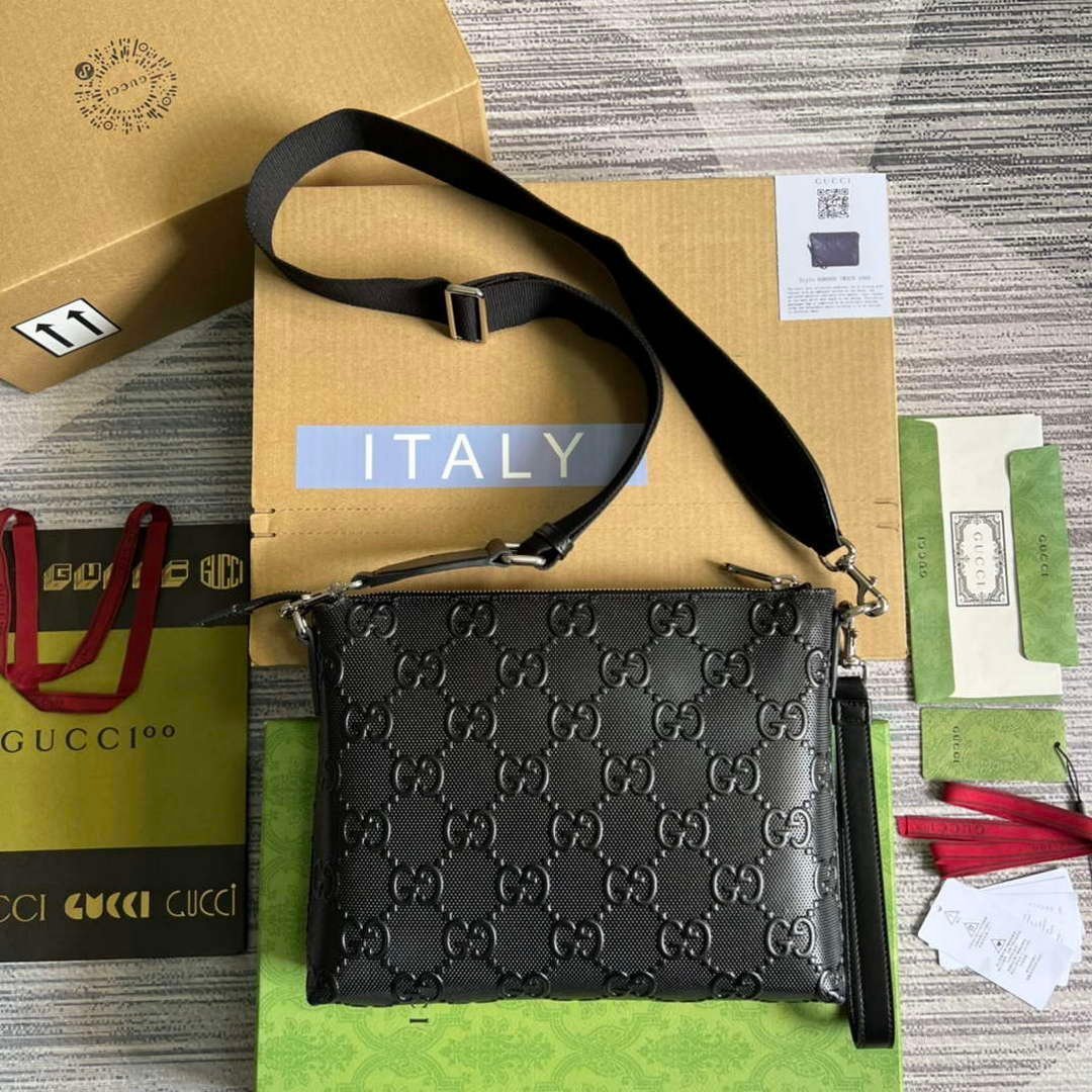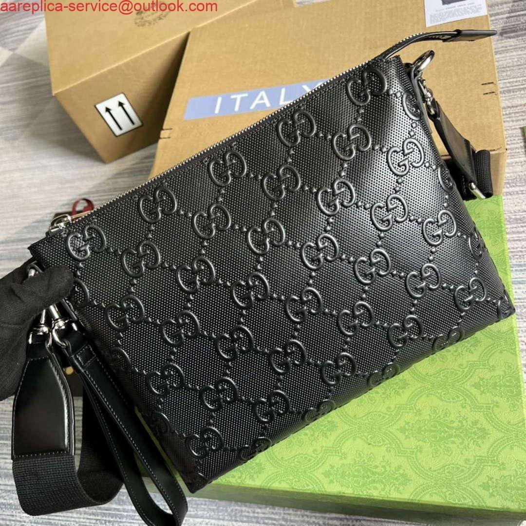 Replica Gucci 696009 GG Embossed Medium Messenger Bag Black