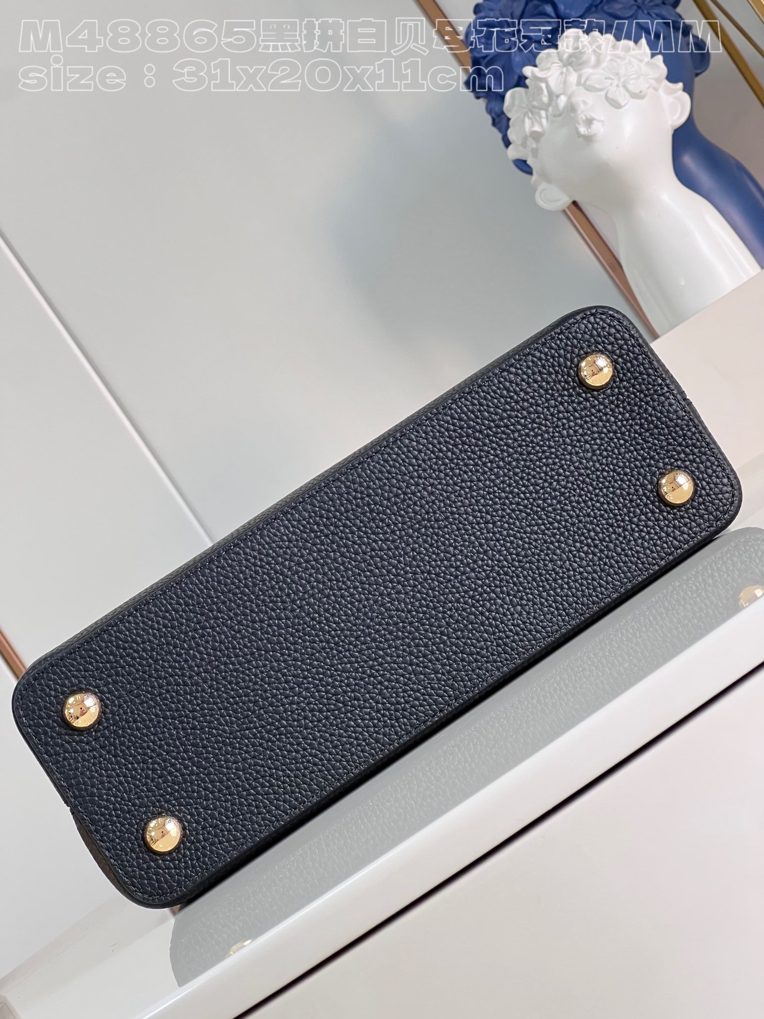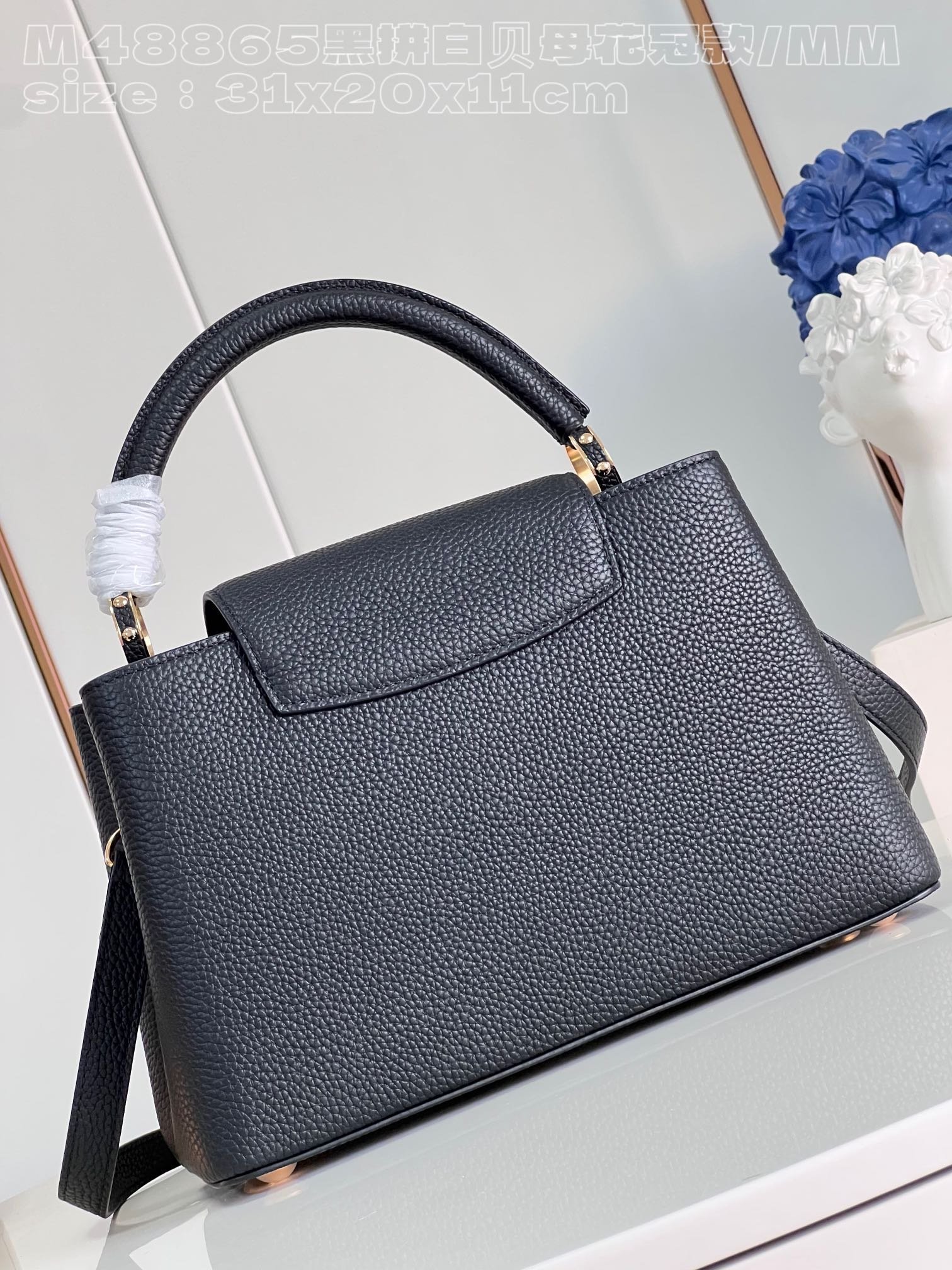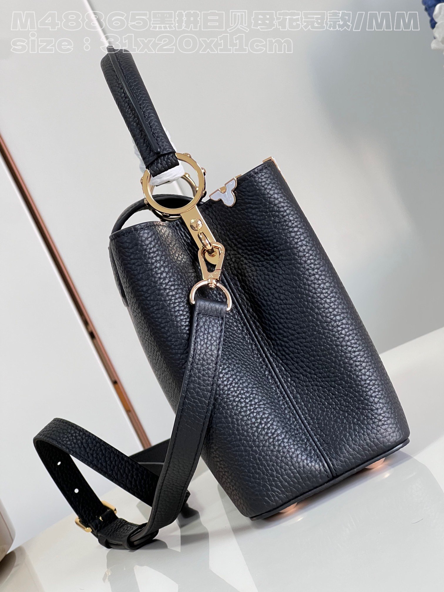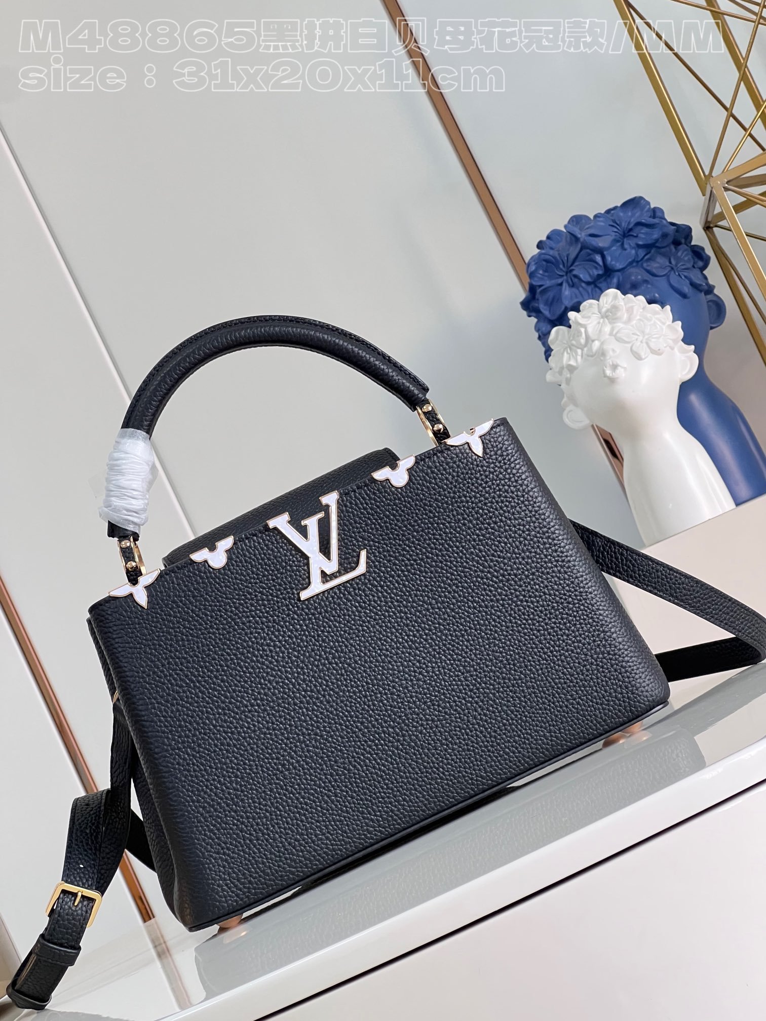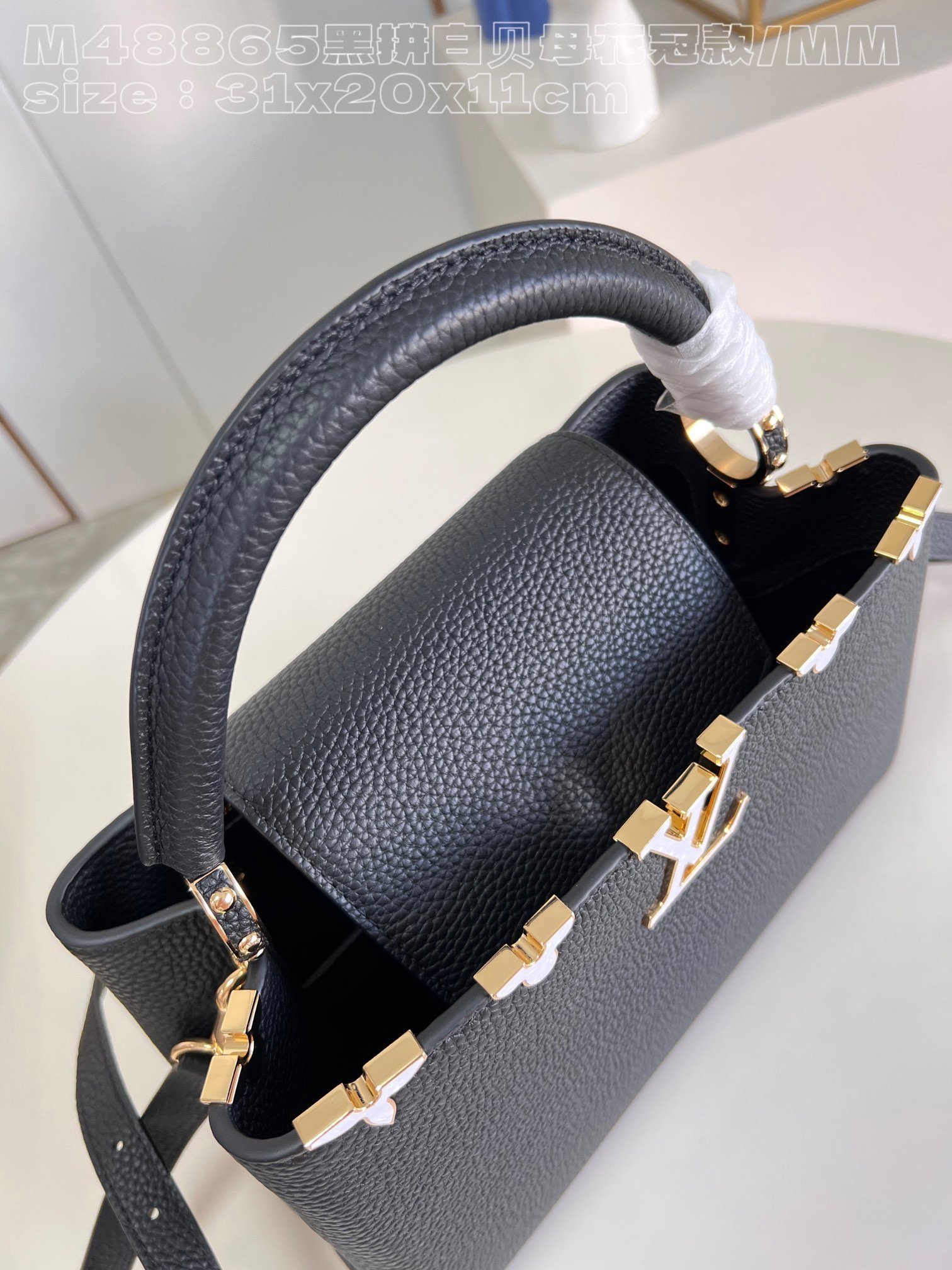 Replica Louis Vuitton Capucines MM Black and white mother-of-pearl M54663