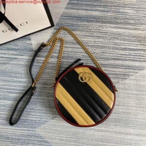 Replica Gucci 550154 GG Marmont Mini Round Shoulder Bag Black Yellow