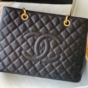 • Sale! Replica Chanel Grand Shopping Top Quality Black Tote Quilted Caviar High A50995
